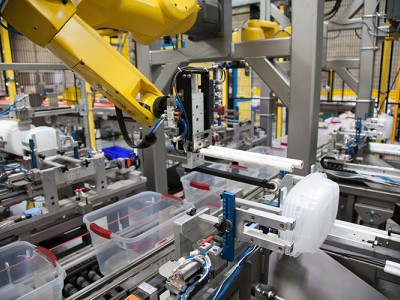 Newell Brands是一家全球领先的消费品公司,拥有众多知名品牌。以前,在公司位于俄亥俄州Mogadore的850,000平方英尺的工厂中,Rubbermaid产品套件是在15-20名操作员的包装线上手动组装的。为了提高生产率,提高一致性并向客户交付更准确的产品,Newell求助于Bastian Solutions来设计和实现用于套件组装的机器人系统。